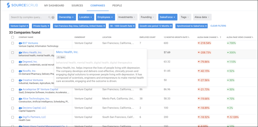 - Narrow your private company sourcing efforts across almost 100 filters go quickly find the most promising leads